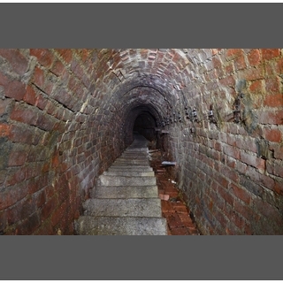 Zaś od upadowej na prawo chodnik (przekop) kieruje się w kierunku sztolni Gustav, w której pobliżu jest on od niej odcięty zawałami, całkowicie blokującymi przejście. Znajdująca się poniżej upadowej obudowana, wydzielona przestrzeń korytarza kopalnianego, kończy się z tej strony ścianką ceglaną z wybitym na dole otworem, umożliwiającym przedostanie się do dawnych wyrobisk kopalni. Dalej występują na przemian dwa rodzaje odcinków korytarza. Pierwszy z nich to odcinki obwałowe, gdzie zwalone ze stropu skały spowodowały usypanie w ciągu chodnika górki, wystającej ponad lustro wody - są to odcinki nie zalane i z niebezpiecznymi, odspajającymi się od stropu blokami skalnymi. Drugi zaś to odcinki gdzie strop jest w miarę stabilny i występuje głeboka woda. Przejście nimi jest również niebezpieczne ze względu na stale występujący, choć podlegający pewnym wahaniom, wysoki stan wody i znajdujące się w wodzie na spągu liczne belki, deski, bale i zwalone bloki skalne.
