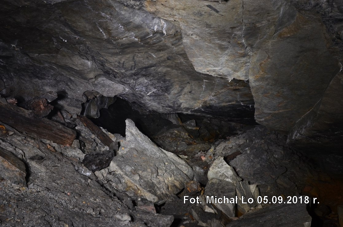 Pierwszy za ceglaną ścianą odcinek korytarza to odcinek z obwałami skalnymi, po lewej stronie znajduje się częściowo eksploatowany w czasie funkcjonowania kopalni pokład węgla. Dalej jest odcinek wodny, mniej więcej w środkowej jego części po lewej stronie znajduje się niewielki obwał skalny. Za tym odcinkiem jest krótki obwał (górka), zaś dalej odcinek wodny w obudowie ceglanej, w którym poziom wody jest wyższy niż w pierwszym odcinku wodnym. W miejscu gdzie się ona kończy pojawia się kolejny odcinek obwałowy, zaś dalej jest trzeci odcinek wodny. W odcinku